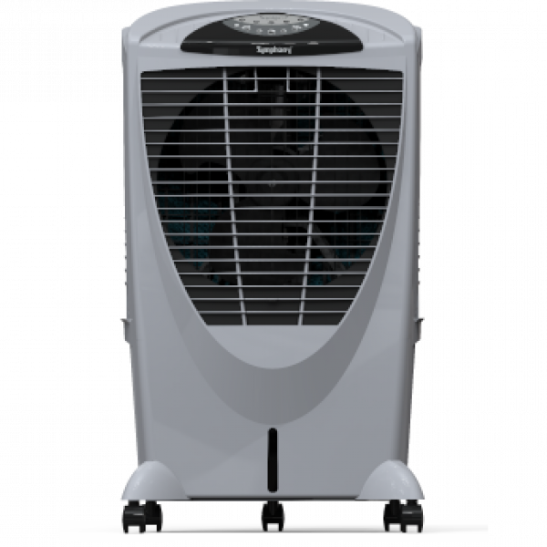 A fan/blower draws hot air from outside the unit and forces it through the moistened pad.
